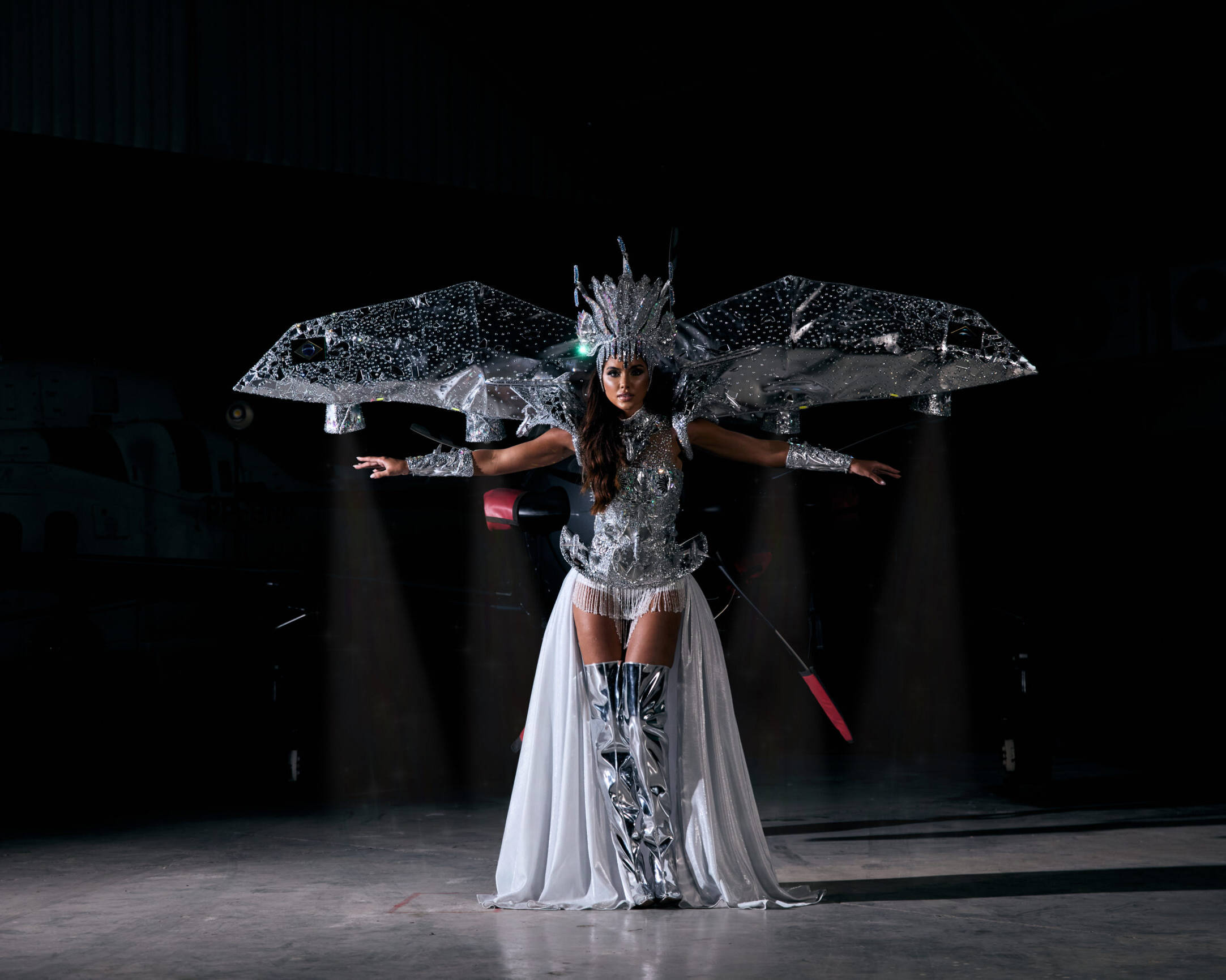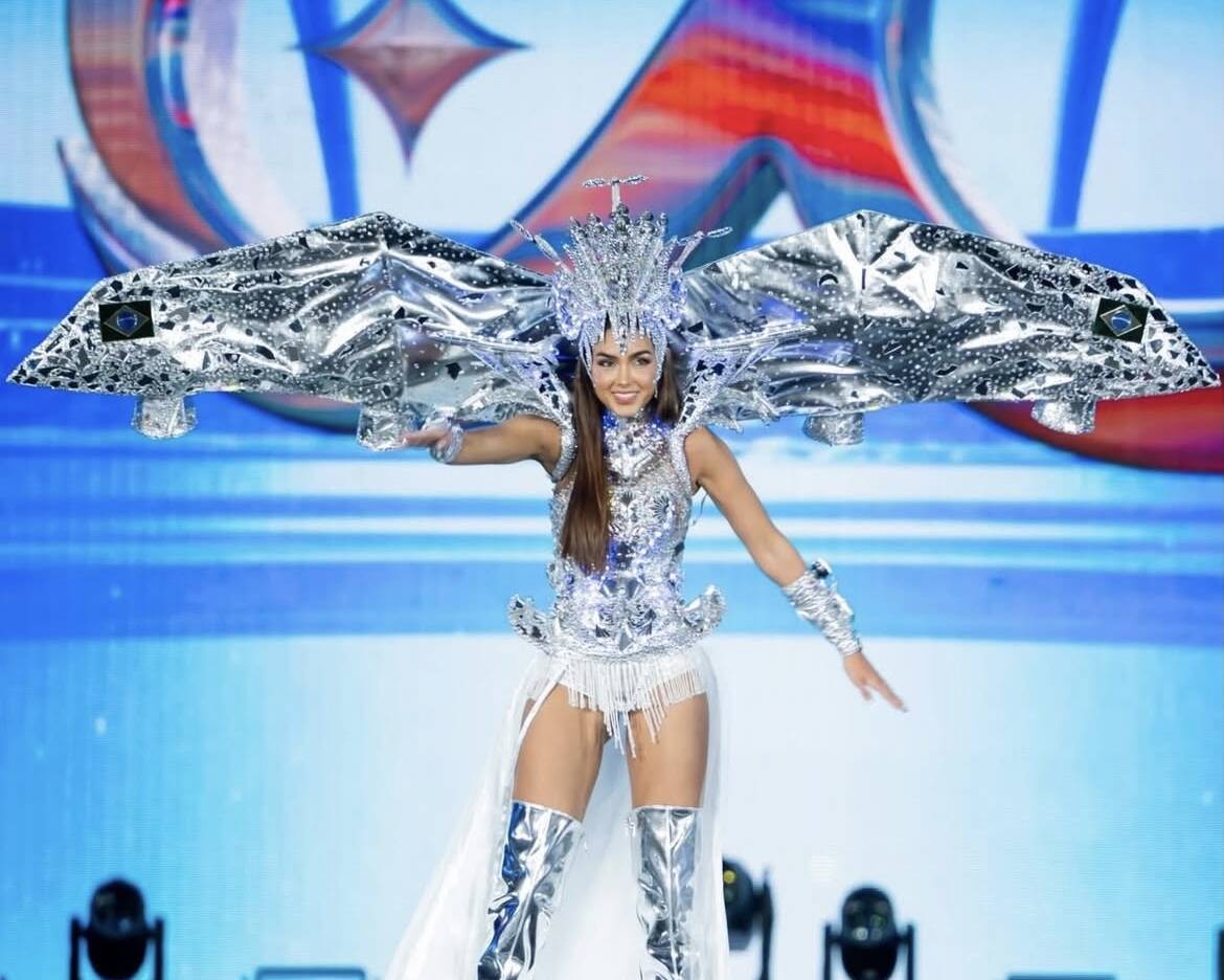 Um dos pontos altos da competição foi o desfile de traje nacional, apresentado no Cosmo Carnival. Com o tema A Força Que Nos Faz Voar, Gabriela vestiu um Brasil visionário e potente. O traje homenageou Santos Dumont e a inventividade brasileira, trazendo o brilho metalizado que remete ao universo das aeronaves e ao nióbio, metal estratégico abundante no Brasil. Uma narrativa que uniu ciência, coragem, história e beleza, representando um país que sempre encontra maneiras de ir além.