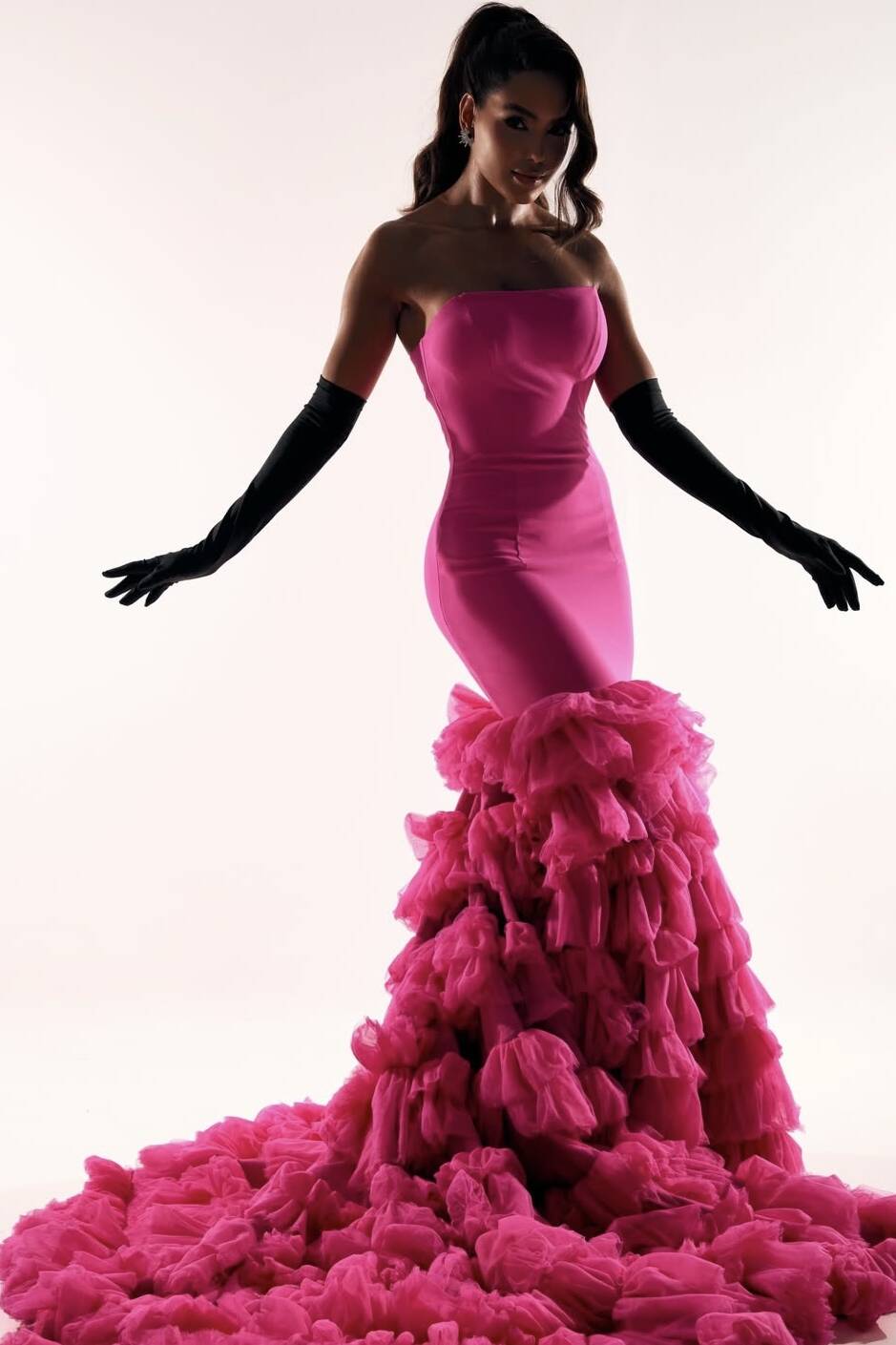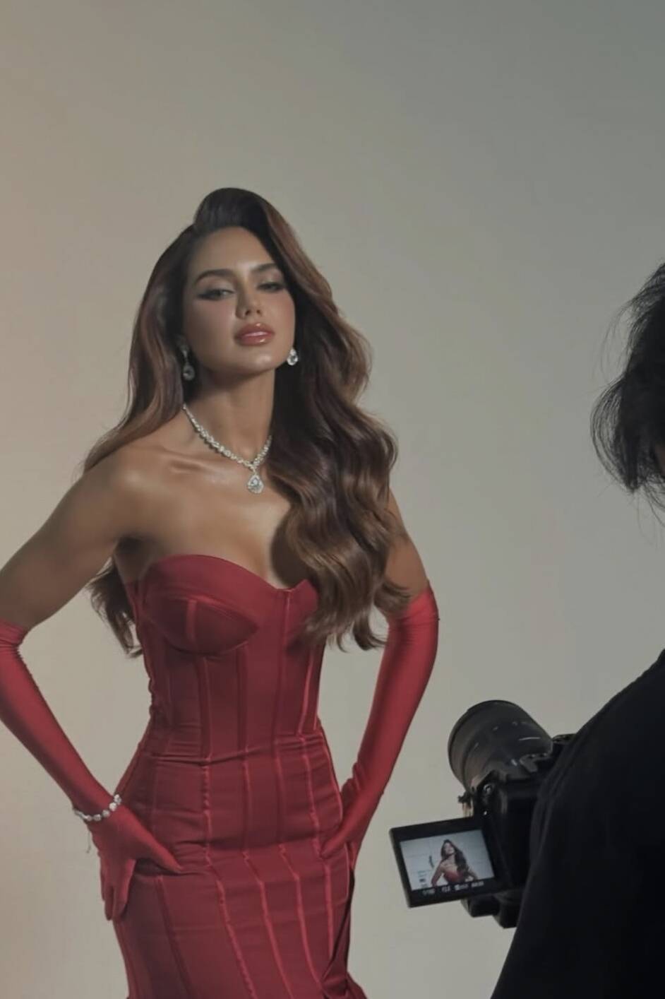 No segundo dia de confinamento, Gabriela realizou o glamshoot oficial do Miss Cosmo Internacional 2025. Vestindo um elegante vestido vermelho, ela participou do photoshoot oficial do concurso, demonstrando segurança, presença e forte impacto visual diante das câmeras.